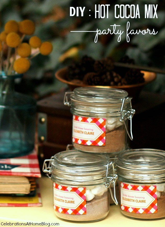 Treat your guests to a cup of cheer with these flip-up jar favors filled with homemade cocoa mix. Perfect for winter weddings and the jars are reusable.