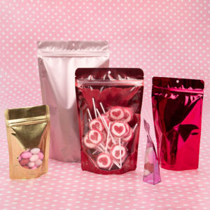 A customer favorite, our bright stand up zipper pouches are a fantastic option for candies and treats. They come in Valentine’s Day-friendly colors and always grab the attention in the room. You can heat seal them as well to create an airtight and secure package for your goods. Tear notches pre-cut into the sides make it easy to open once purchased.
