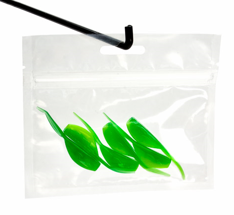 You might also try our crystal clear laminated “worm bags” with built in hang holes. They feature heat sealability for a secure closure while keeping the integrity of your packaging and products. They beautifully display soft plastic worms and other imitations like Baitfish, Crawfish, Lizards, Frogs, and much more!