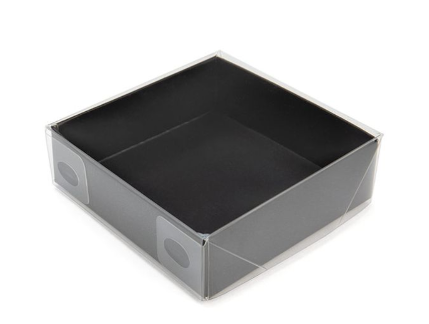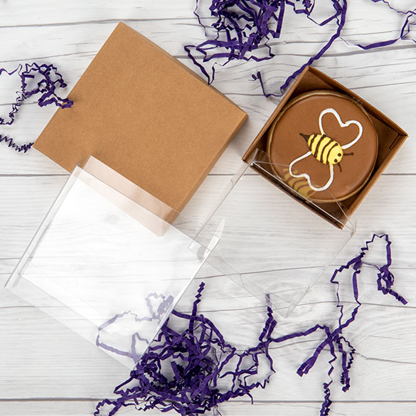 Two Piece boxes are perfect for displaying gourmet cookies, gifts or specialty stationery. To create this look, you can choose a box bottom in the size and color that best suits your needs and then one of our two clear lid options.