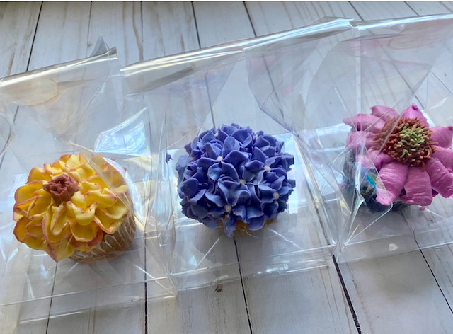 Packaging the floral/succulent cupcakes individually in ClearBags packaging also make great favors and are especially convenient during COVID for sanitary reasons.