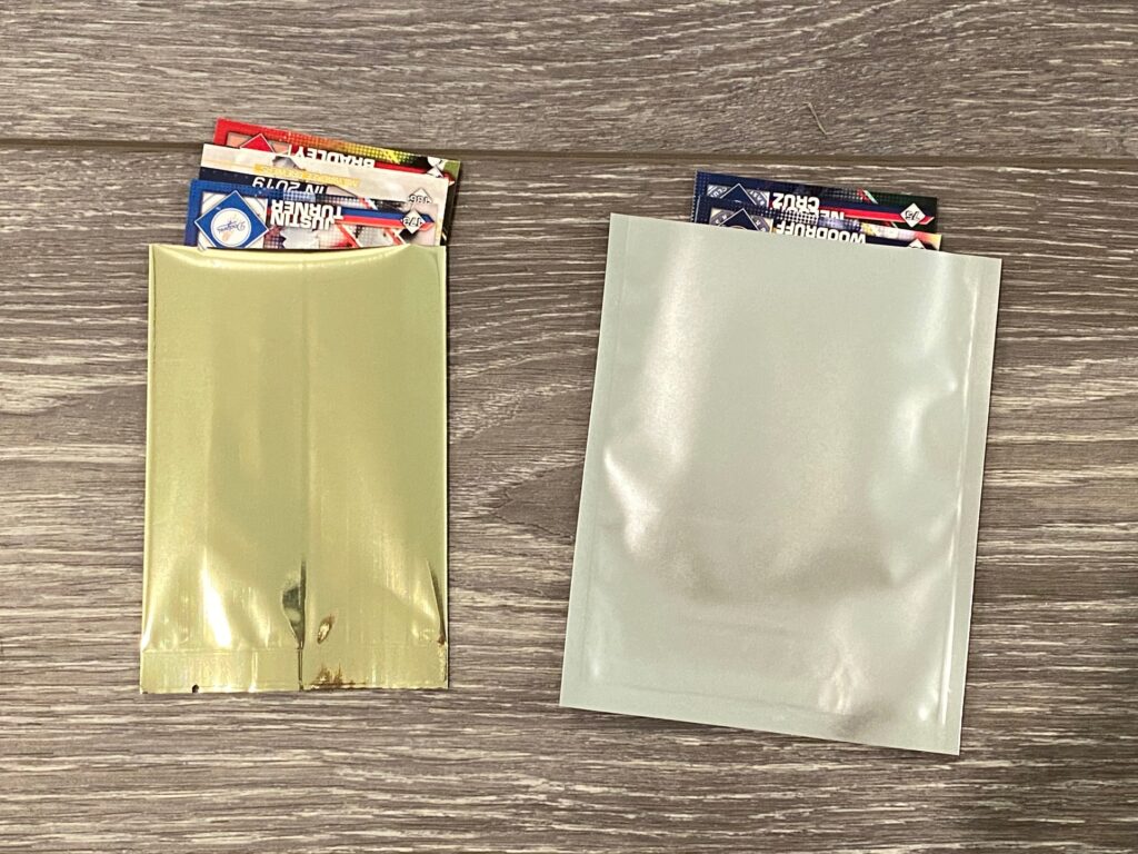 Baseball Cards are also valuable collectibles. These cards need protection from fingerprints and sunlight. When you have curious little hands around, our child resistant bags are a must. They discourage tampering with a no tear option and 5mm side seams. These bags are made to be sealed with a standard heat sealer. Our Premium Metallized Heat Seal Bags also use a heat sealer to close but come with tear notches on each end of the bag for easy opening. These Metallized bags are made to protect against UV lighting, moisture and oxygen.  Both of these options can be marked with a sharpie for easy organizing and long term storing.