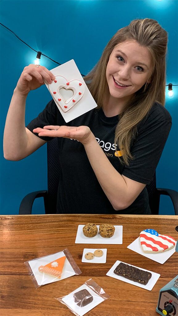 These cookie boards come in a variety of sizes and fit perfectly into a matching Crystal Clear Bag. We have Flap Seal Bags, Flat Heat Seal Bags or Eco Compostable Bags to match with the boards. You will want to choose the size and shape that works best with your product. The square shaped cards are great for round cookies, brownies, or rice crispy treats. The more rectangular cards are ideal for packaging items like biscotti, protein bars, chocolate bark and more.