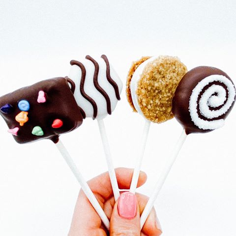 Our cake pops are truly tiny, delicious works of art. To meet all of our customers’ needs and desires, we have two types: Stocked Pops and Custom Pops. Our Stocked Pops come in 20 different flavors and are ready for pick up at a moment’s notice. These pops also include monthly Featured/Holiday Pops that are perfect for gifting or celebrating with loved ones. On the other hand, our Custom Pops are where our customers’ cake pop dreams come true. When a pop pal needs a specific cake pop designed, we work closely with them to craft the perfect pop!