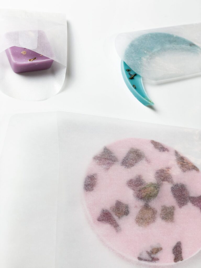 Glassine is naturally, air, grease, and water resistant, so the frosty look of our envelopes will not leave any possible unwanted residue from wax melts. The envelopes come open-ended with a fold over flap, no adhesive. We also offer glassine sheets; these can come in handy when displaying wax melts creatively, on a tray, or having unpackaged ones out for customers to smell, and handle as a sample.
