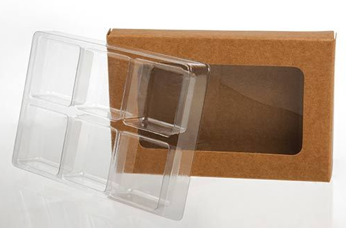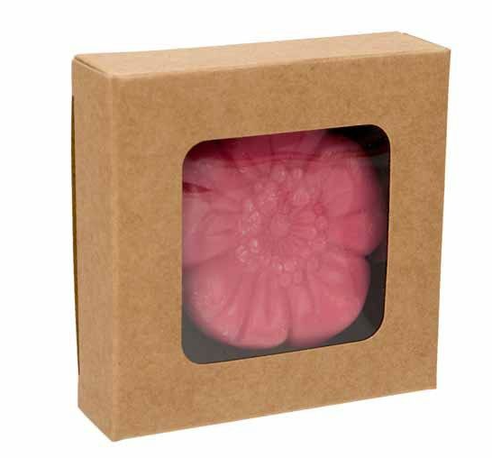 Paper Window Boxes are another option. Make sure to select the ones that come with a clear, archival sheet glued to the inside of the cut-out window to showcase your beautiful wax melts.