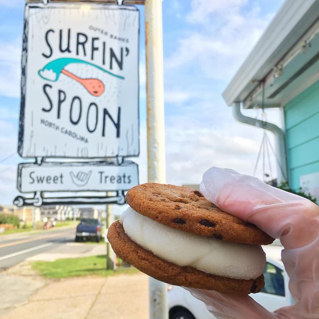 Surfin’ Spoon is a fun, little frozen treat shop specializing in soft serve and handcrafted ice cream sandwiches.  The shop is located in the Outer Banks of North Carolina, but we wholesale our products regionally.  My wife and I dreamed of owning a small business for many years, and that became reality in 2012.  Almost ten years into it, we have “stoked out” countless tourists visiting our beautiful beaches, and faithful locals alike, with tasty treats!
