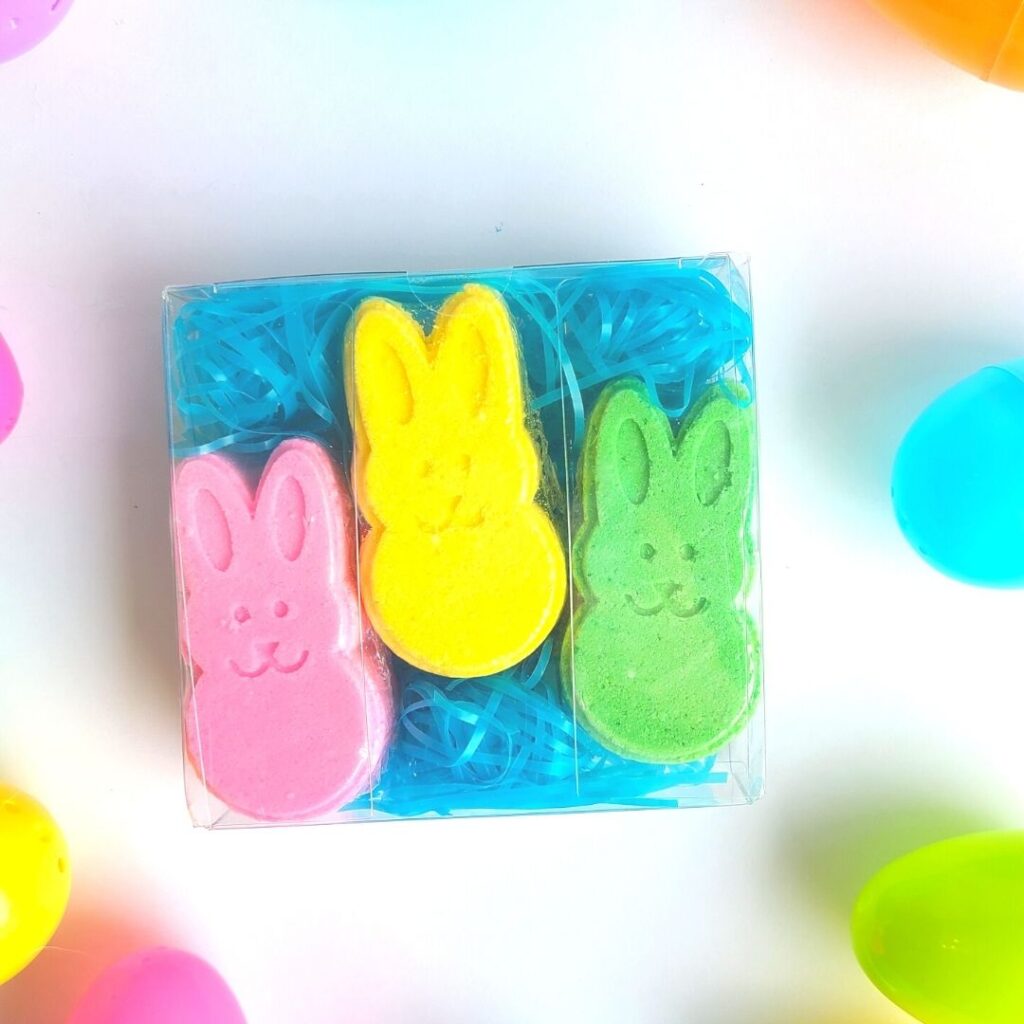 I use a variety of different colored grass and/or crinkle paper! I use 4″ x 4″ x 1″ Crystal Clear Value Boxes (50 Pieces) [VB301], 3″ x 3″ x 2″ Crystal Clear Value Boxes (50 Pieces) [VB298], 4 1/2″ x 1″ x 5 7/8″ Crystal Clear Boxes® (25 Pieces) [FB17]