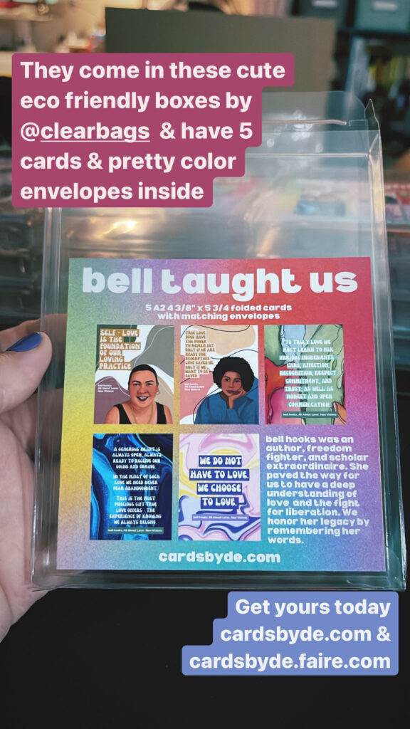 Cards by Dé, a Black Queer worker owned cooperative was founded by Sadé (they/she) and Azizi (any pronouns with love) in December 2018. They create stationery that reflect their values and how they see themselves in the world as partners in life and business. They dream of and fight for a world where all Black especially Black queer folks can express themselves vulnerably and authentically and they model that through their art.