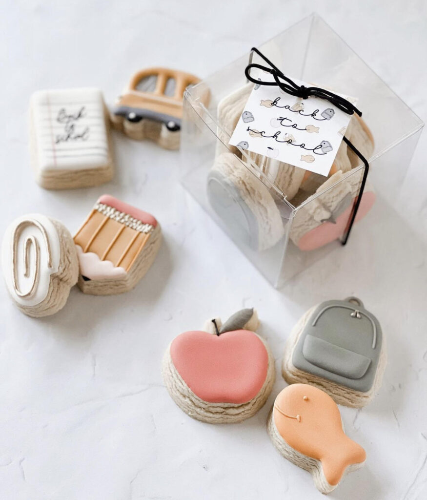 Send your best wishes for the school year in the form of a sugar cookie! We love what Lisa’s Cookie Kitchen has done to combine a cookie and a gift card. And Bouge Cookie Co. created adorable mini sugar cookies of school supplies as a set.