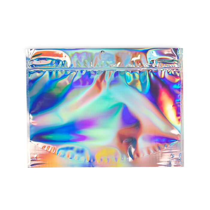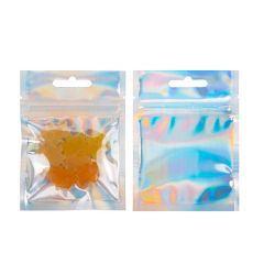 Iridescent Zipper Pouches come in 5 sizes to hold anything from candies and spices to popcorn and bath salts. Made from transparent materials, these iridescent bags show off your product with a colorful touch.