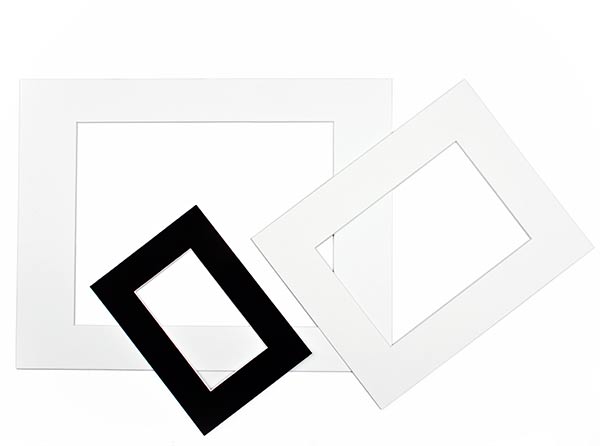 Single mats feature a single solid color to add a thick border around your work and are available in white, black, and cream tones.