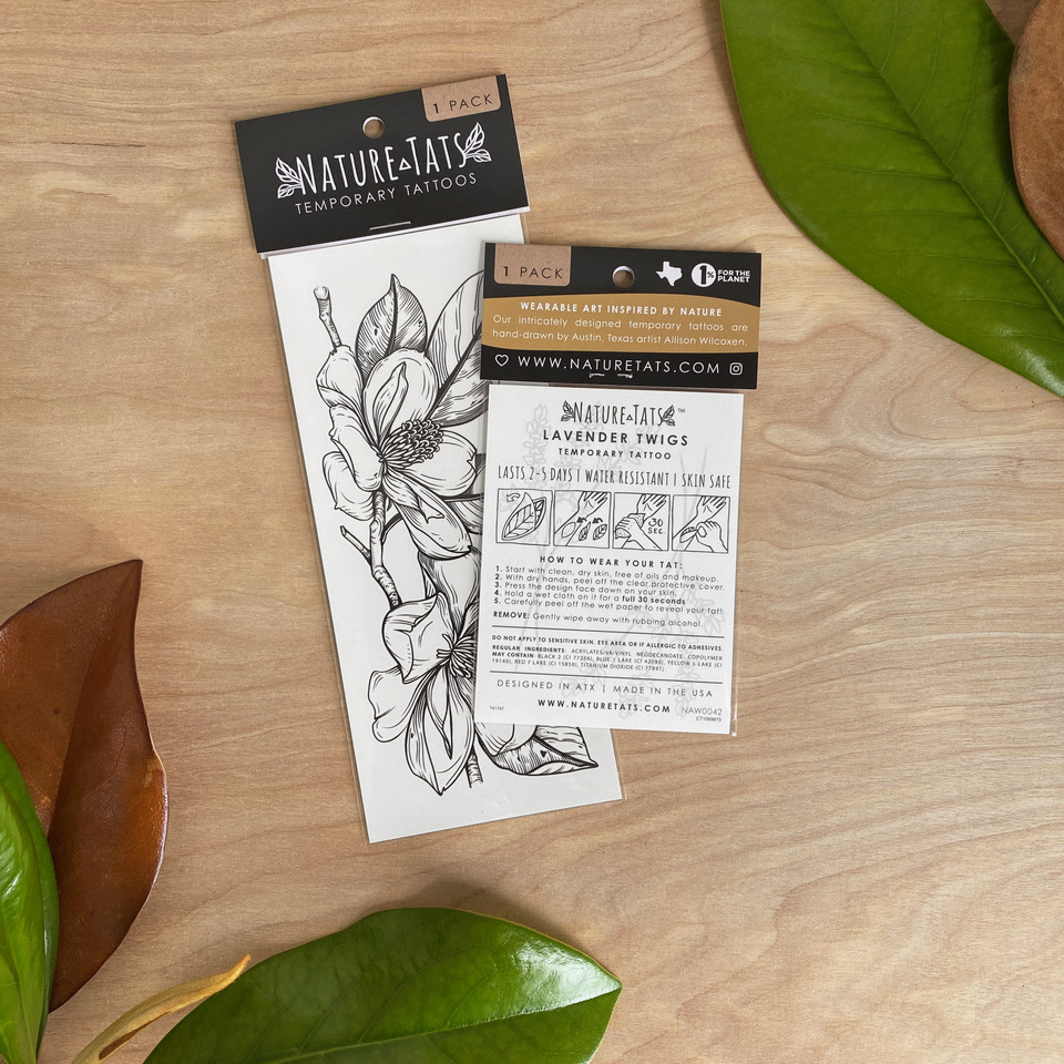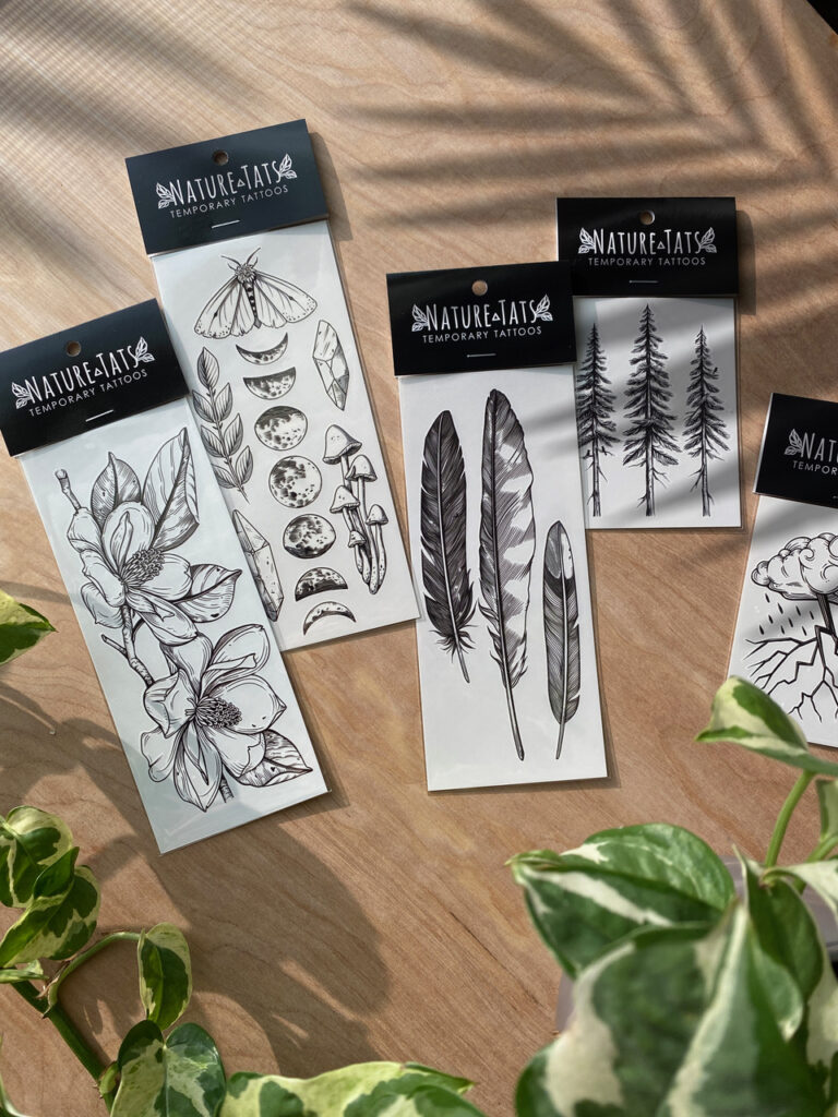 NatureTats creates wearable art inspired by nature! Our intricately designed temporary tattoos are hand-drawn by Austin, Texas artist Allison Wilcoxen.