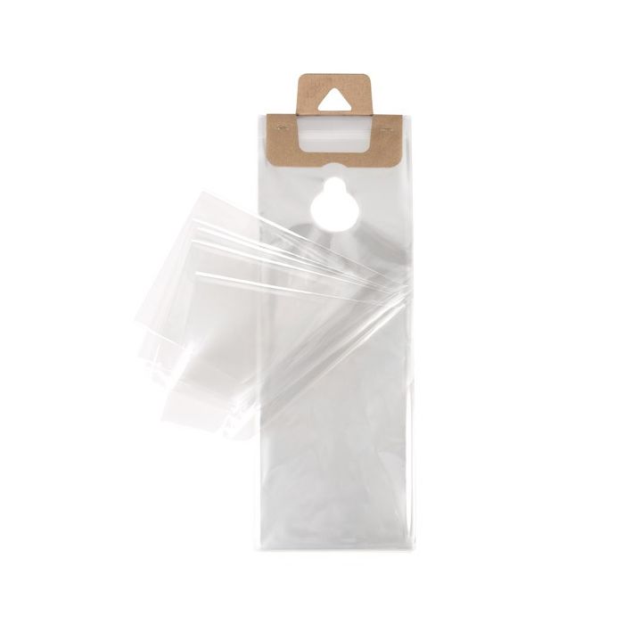 Our LDPE Newspaper Bags were designed with the carrier’s needs in mind. Each set of 100 bags comes on a cardboard hanger with a perforation at the top for easy tear off. These bags are made from 0.8 mil lightweight LDPE (polyethylene) material and side sealed for durability, making sure your materials stay clean and dry from the outdoor elements. With an extra lip, you can easily tie the top of these bags with a knot to keep out moisture. Available in multiple sizes to accommodate various materials.