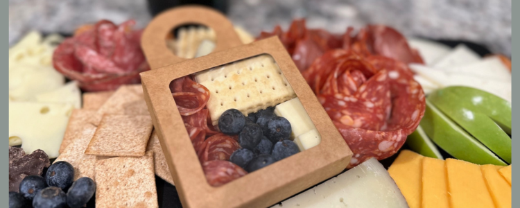 These boxes come in two sizes and are available in Clear, Kraft, and Black Kraft. To assemble your personal charcuterie boxes, fill the box with crackers, meat, cheese, fruit, or chocolate. Classy and creative, these boxes are ideal as a beautiful treat for a holiday party, client gift, party favor, or housewarming gift.